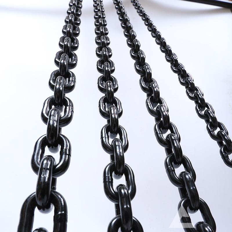 起重鏈條規格型號比較多,通常是由鏈條的直徑和鏈節的數量來表示的。工業起重鏈條的直徑越大,鏈條的強度就越高,吊重能力也就越大。鏈節的數量越多,鏈條的長度越長,這樣就可以適應大范圍的吊裝高度。發黑起重鏈條的直徑從3.2mm到32mm不等,承載能力從0.3噸到31.5噸不等,鍍鋅起重鏈條的吊重能力和材質和制造工藝也有很大的關系,一般來說,耐高溫起重鏈條采用高強度合金鋼材質制造而成,經過熱處理和表面處理工藝,這樣可以提高耐腐蝕性。鏈條的制造工藝包括鏈條的鍛造 、焊接、熱處理等,這樣可以確保起重鏈條的質量和可靠性。